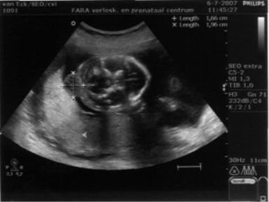 De eerste maanden verliepen zoals gewend. Mama was veel moe en groeide gestaag. Vol verwachting, maar ook wel zenuwachting, gingen we naar het echobureau voor een 20-weken-echo. Daar bleek al snel dat er iets niet goed was met ons kindje. We zagen een bult op het hoofdje, achter in de nek. De echoscopist kon ons niet verder helpen en verwees ons door naar een gyneacoloog.
